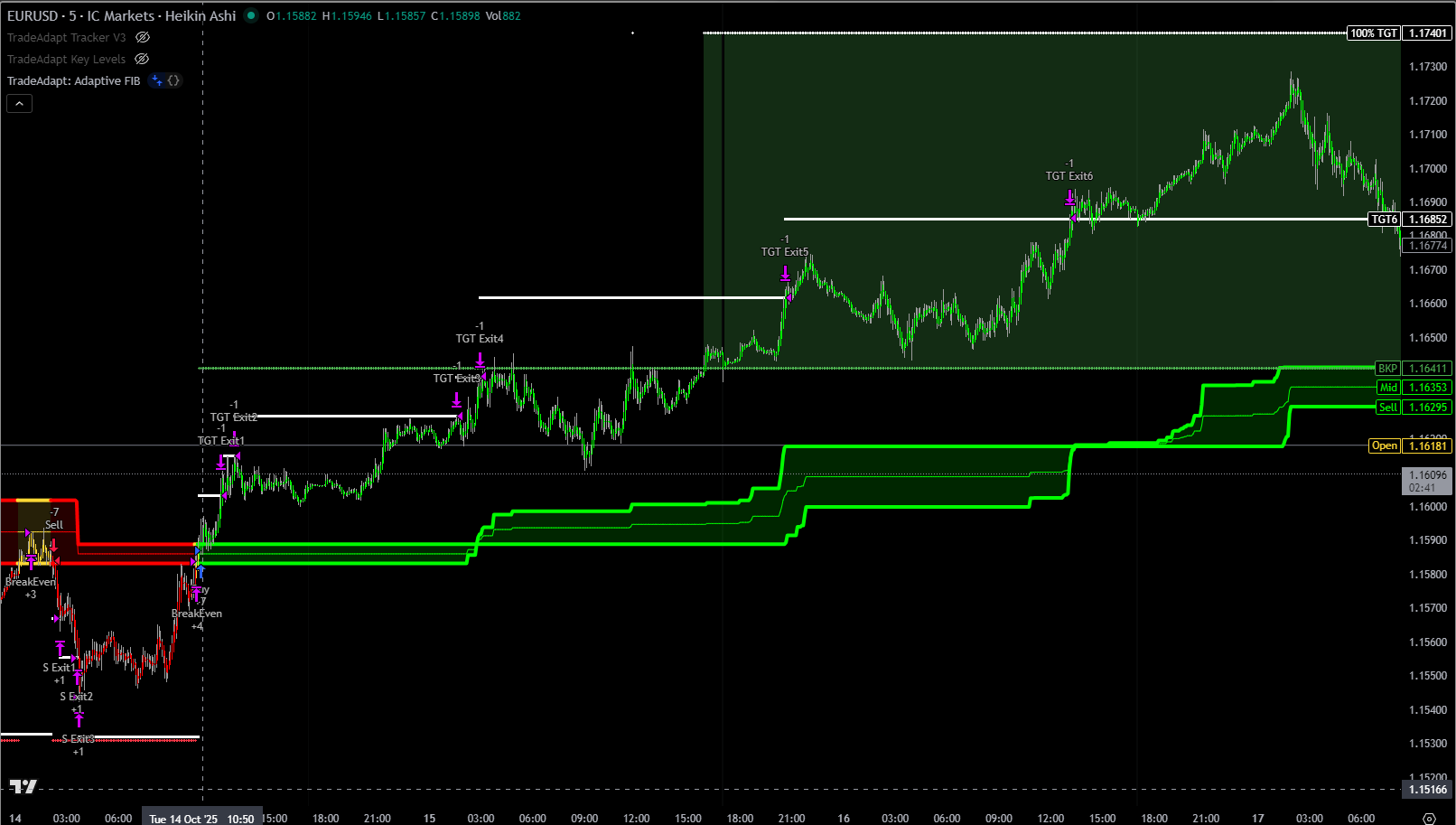 Proprietary bar type combining Heikin Ashi smoothing with algorithmic precision for optimal entries.